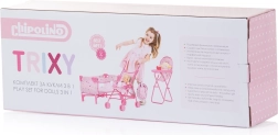 Fedezze fel a teljes babafelszerelést a finom UNICORN motívummal. A CHIPOLINO TRIXY UNICORN készlet babakocsit, kiságyat és etetőszéket tartalmaz, hogy a gyerekek teljes mértékben fejleszthessék a gondoskodást, empátiát és a fizikai koordinációt. Könnyű felépítésének köszönhetően a játékokkal otthon és útközben is könnyű a kezelés.