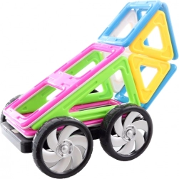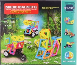 A Magic Magnetic Pop Set mágneses építőkészlet egyszerre nyújt szórakoztató és fejlesztő játékélményt. Az erős mágneseknek és a változatos formáknak (négyzetek, háromszögek, kerekes alvázak) köszönhetően a gyerekek könnyedén állíthatnak össze színes járműmodelleket és egyszerű 3D építményeket. Az építőkészlet ideális a konstrukció alapelveinek első megismeréséhez, és támogatja a logikus gondolkodást.