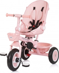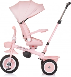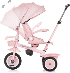 Háromkerekű árnyékolóval Marathon 2 az 1-ben Flamingo úgy lett tervezve, hogy maximális kényelmet és biztonságot nyújtson mind a gyermekek, mind a szülők számára változatos lehetőségeinek köszönhetően. Kezdetben a szülők tudják irányítani a háromkerekűt a kényelmes ökobőrrel borított karral, és amint a gyermek elég nagy lesz, önállóan is közlekedhet.
