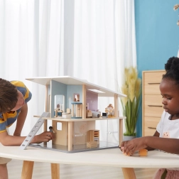 A készlet tökéletesen illik a legtöbb fából készült babaházba, és a játékot hétköznapi helyzetekkel bővíti. A gyerekek gyakorolják a kommunikációt, az empátiát és a történetmesélést.
