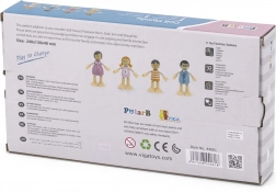 A PolarB fa babacsalád örömet szerez minden kis mesemondónak. A csomagban 4 figurát találsz (anya, apa, fiú és lány) mozgatható végtagokkal a könnyű pózoláshoz. A biztonságos, nem mérgező festékeknek és a masszív fának köszönhetően ideális babaházakba és önálló szerepjátékhoz is.