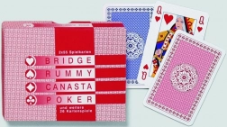Univerzális csomag klasszikus francia kártyákból, ideális kanasztához, zsokéhoz, bridzshez, pókerhez és pasziánszhoz. A csomagban 2 × 55 lap található jokerekkel, családi estékhez és versenyjátékhoz egyaránt alkalmas.