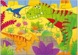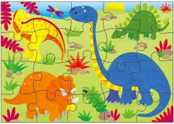Fedezd fel a szórakoztató gyerekpuzzlet dinoszaurusz témával praktikus kis bőröndben – négy kép fokozatosan növekvő nehézséggel (12, 16, 20 és 24 darab). Ideális 3 éves kortól, miközben a kirakás fejleszti a logikus gondolkodást, a finommotorikát és a türelmet. A kompakt csomagolás műanyag fogantyúval tökéletes utazáshoz.