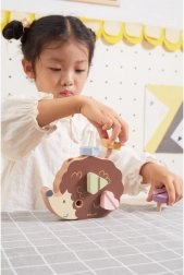A fa süni lehetővé teszi a gyerekek számára, hogy színes és különböző formájú csavarokkal gyakorolják a finommotorikájukat.