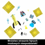 Nyisd ki Frankie Stein elektromos hangulatú szekrényét, és lépj be a Monster High neon világába. Négy Color Reveal hatású kulcs, titkos rekeszek tele kiegészítőkkel és olyan kellékek várnak, amelyek sötétben világítanak. Ideális kreatív játékhoz, gyűjtéshez és stílusos kiállításhoz.