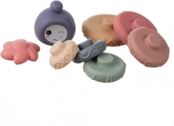 A játék puha, nem mérgező PVC-ből készül, lekerekített élekkel – ideális az első szenzoros játékokhoz és gyengéd rágókaként is. Az elemeket könnyű meleg vízzel leöblíteni vagy nedves ruhával áttörölni, ezért a mindennapos használat mellett is higiénikusak maradnak.