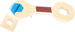 A fa kalapács, csavarhúzó, villáskulcs és fogó kifejezetten a kis gyerekkézhez készült. Támogatják a természetes ügyességet és a valós munkafolyamatok utánzását.
