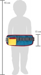 A textilöv masszív csattal és D-gyűrűvel könnyen a gyermek alkatához igazítható. A hurkok és a zseb mozgás közben is biztonságosan a helyükön tartják a szerszámokat.