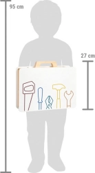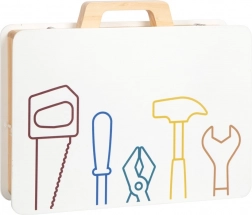 A small foot Workshop gyerek szerszámos bőrönd minőségi fa készlet kis barkácsolóknak. Belül valósághű gyerek szerszámok és bőséges csavarozós-építős elemek várják a kreatív alkotást. A gyerekek versenyautót, helikoptert, szélmalmot, repülőt és sok más ötletes modellt állíthatnak össze – kiváló játék a kreativitás és a műszaki gondolkodás fejlesztésére.