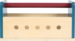Fa kalapács, villáskulcs és csavarhúzó egészül ki csavarokkal, anyákkal és perforált elemekkel – minden adott a finommotorika és a fantázia edzéséhez.