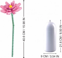A készlet teljes mértékben kompatibilis más márkákkal, így könnyedén kibővítheti saját ötleteivel. A csomagban részletes szerelési útmutató található, amely lépésről lépésre végigvezet. Az összeállított lótusz megközelítőleg 40,6 cm magas, a váza 21,6 cm magas és 9 × 9 cm az átmérője.