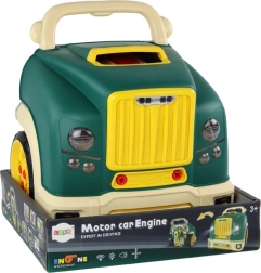 Ez a zöld kamion formájú gyerek szerelőműhely egyesíti a játékot és a tanulást. A gyerekek lecsavarhatják a kerekeket, kinyithatják a motorháztetőt és felfedezhetik a motort, miközben fejlesztik kéz-szem koordinációjukat és türelmüket. Az interaktív műszerfal kormánnyal, dudával, start/stop gombbal, vészjelző gombbal és „fokozat” kapcsolóval valósághű vezetési élményt nyújt.