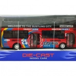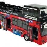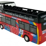 Ez a részletgazdagon kidolgozott, piros, kétszintes busz élethűen idézi meg a városi városnéző járműveket. A robusztus fém kivitel, a feltűnő színezés és a realisztikus részletek kedvelt játékká és gyűjtői modellel teszik. Elég a buszt a felülethez nyomni, és felgyulladnak a fények, valamint megszólalnak a hangok, amitől a játék még szórakoztatóbb.