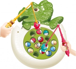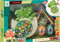 Szórakoztató gyerekjáték dínó alakban, ahol a „tóban” a halacskák forognak és felbukkannak a felszínen. A gyerekek hálóval vagy horgászbottal fogják ki őket, miközben fejlesztik a figyelmet, a finommotorikát és a koordinációt. A játék fényhatásokkal és hangokkal fokozza az élményt.