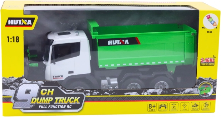1:18 méretarányú zöld, távolról irányítható teherautó valósághű építkezési szórakozást nyújt minden kis építőnek. Ez a modell lehetővé teszi az ömlesztett anyagok és építőanyagok szállítását távirányítással.