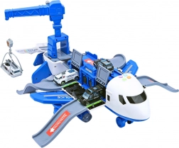 Kihajtva a repülő mobil rendőrállomássá alakul rámpákkal, tárolóterekkel és egy platformmal az autó „kilövéséhez” a gyors bevetésekhez. A készlet része 3 rendőrségi jármű, egy 360°-ban forgatható daru tekerőgombbal, valamint egy táblákból, bójákból és egyéb kiegészítőkből álló szett saját város és utak építéséhez.
