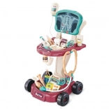 Csomag tartalma: panel/kocsi EKG-effektekkel, szemüveg, sztetoszkóp, hőmérő, otoszkóp, vérnyomásmérő, kalapács, fecskendő, világító fogtükör, szike (játékszer), fertőtlenítő krém utánzata, műkönny/szemcsepp utánzat, gyógyszeres doboz utánzat, orvosi névkitűző, betegkártya.