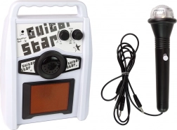 - A készlet része egy fehér hangszóró hordfogantyúval a könnyű szállításhoz, amely erőteljesen felerősíti a hangot, hogy a gyermek igazi színpadi sztárnak érezhesse magát.