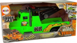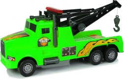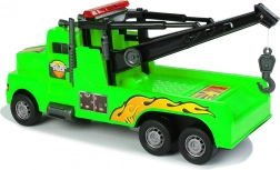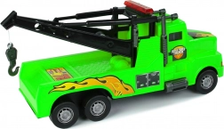 Ez a masszív, műanyag autómentő minden gyerekgarázs sztárja lesz. A valósághű részletek, a lángmintás matricákkal díszített zöld szín és a működő daru csörlővel egyaránt fejlesztik a fantáziát és az önálló játékot. A tekerővel működtetett kihúzható kötélnek és az erős kampónak köszönhetően könnyedén „elszállít” más játékokat biztonságos helyre.