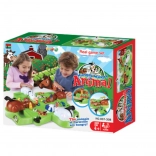 - játéktábla, 4 állatka, 20 golyó, 4 golyókilövő, matricaív