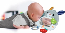 Ismerje meg a szórakoztató és funkcionális tükrös nyuszit a kiságyhoz, amely ideális az érzékek stimulálására és a gyerekek készségeinek fejlesztésére. Ez a puha játék biztonsági tükröt visel a hasán, amely fényhatásokkal, dallamokkal és rejtett képekkel vonzza a gyerekeket. Éjszakai üzemmódban nyugtató dallamok és természet hangjai állnak rendelkezésre az elalvás megkönnyítésére.
