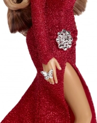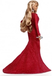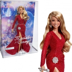 A Mariah Carey Barbie baba káprázatos vörös ruhát visel, amely kiegészíti a téli hangulatot. A részletek, mint az oldalráncolás és a karakteres slicc, növelik eleganciáját. Jellegzetes göndör hajával és ezüst kiegészítőivel, vörös magas sarkú cipővel alkotja meg egyedi stílusát.