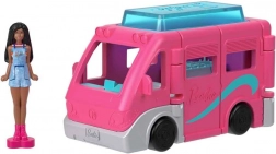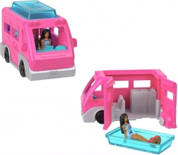 Fedezd fel az ikonikus utazó stílust miniatűr méretben! A BARBIE DreamCamper mini lakóautó részletes belsővel, konyhával, nyitható ajtókkal és praktikus tárolóhelyekkel lep meg. A levehető medence a tetőre rögzíthető, és hőmérséklet-hatásra színt vált – a hideg víz megváltoztatja a színét, a meleg visszaállítja.