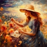 Gyémántmozaik - nő kalapban a számos festés és a keresztszemes hímzés tökéletes kombinációja. Remek választás kikapcsolódáshoz és pihenéshez.