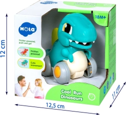 A lendkerekes frikciós meghajtás lehetővé teszi, hogy a dinó egy könnyű lökés után magától menjen. Remek az aktív játékhoz és az első versenyekhez szőnyegen vagy padlón.