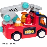 A gombok megnyomására az autó villogó fényeket és valósághű szirénahangokat ad ki, amelyek a gyerekeket a tűzoltók szerepébe vonják.