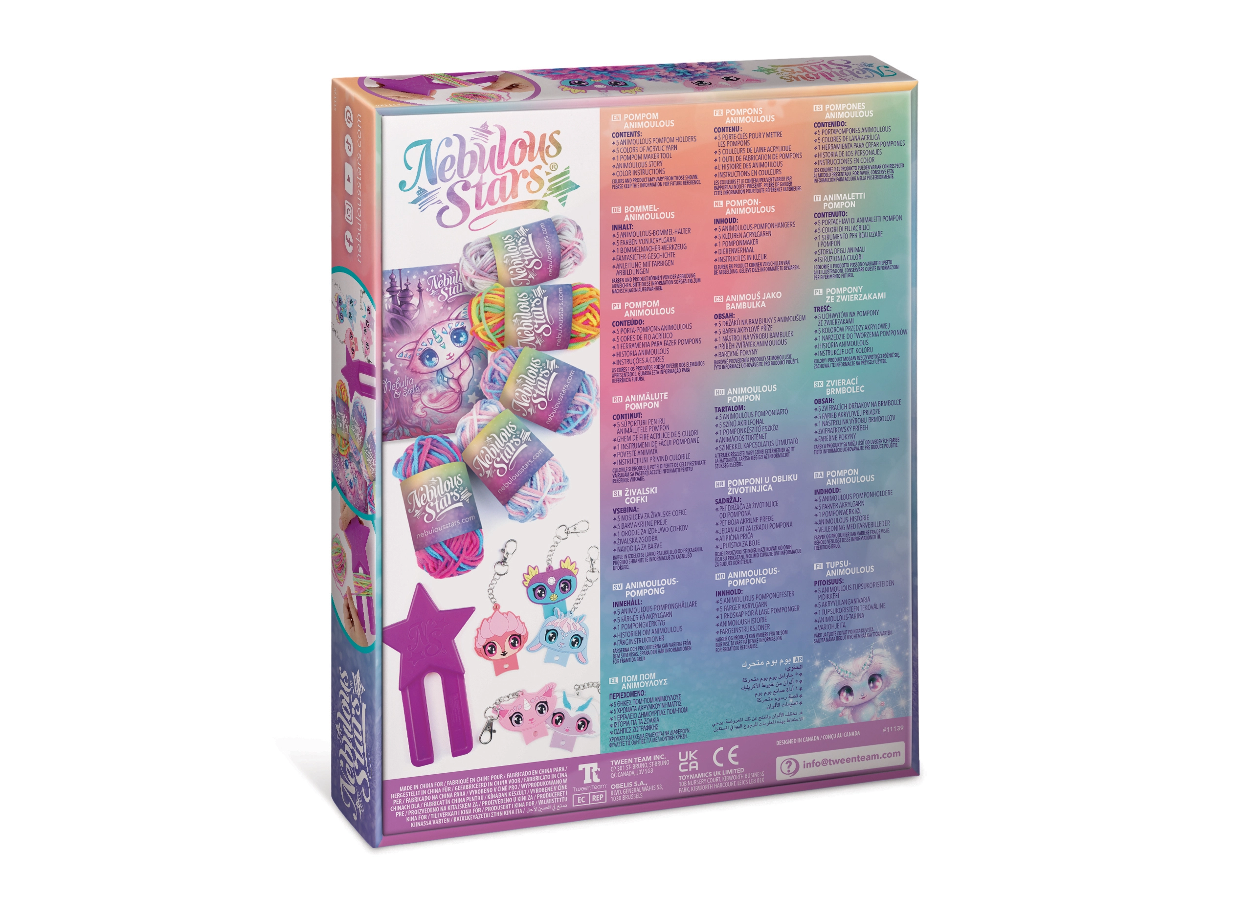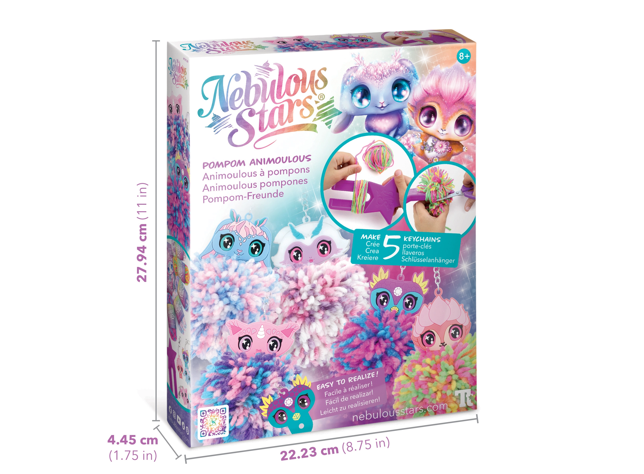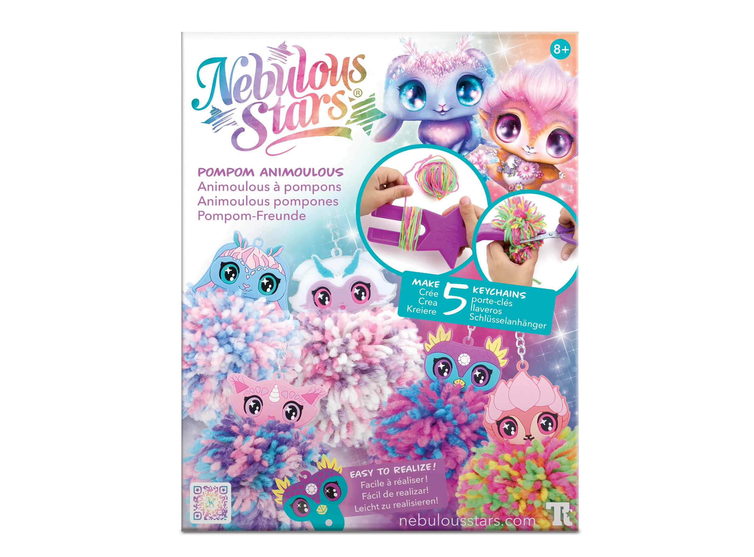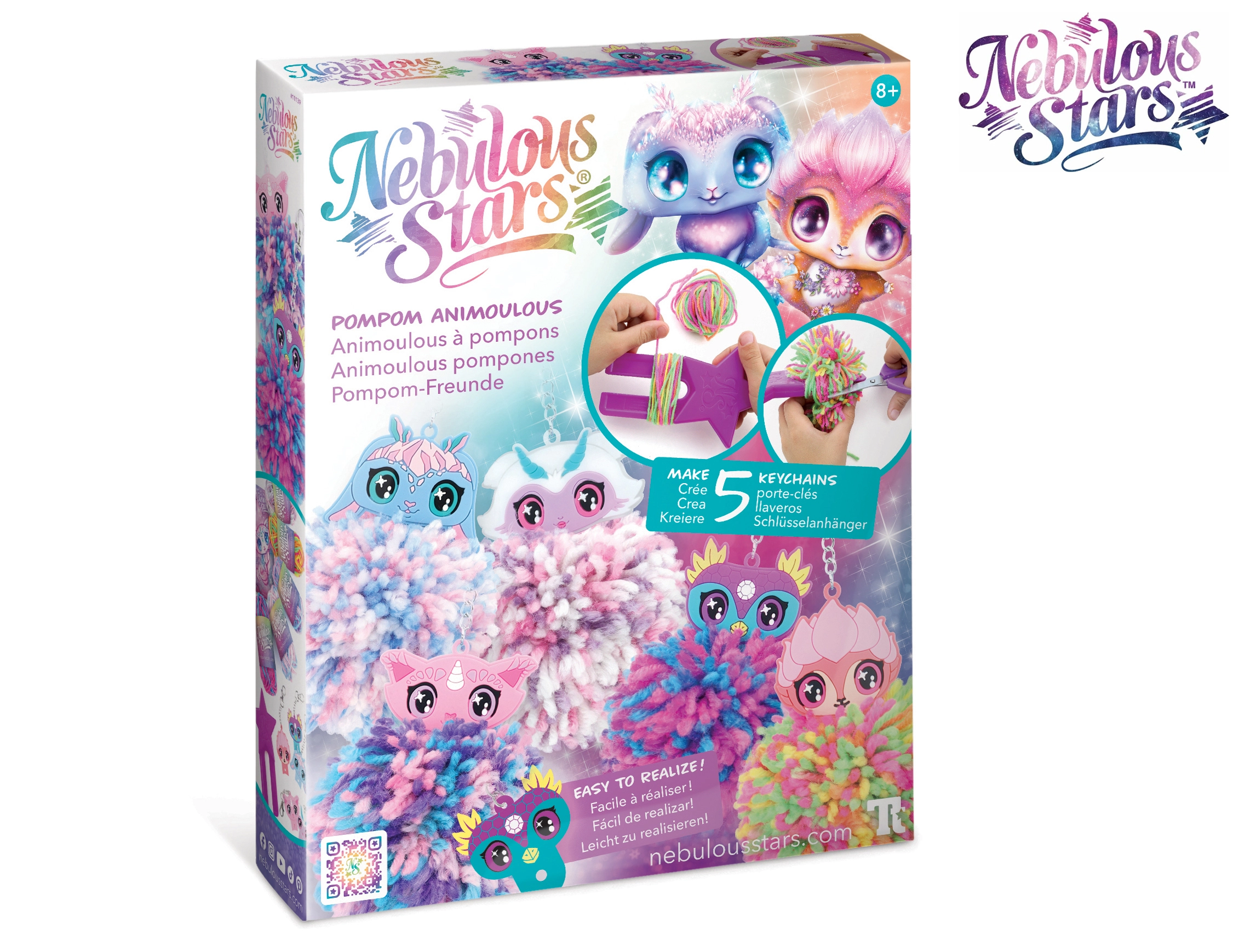 Készíts aranyos pomponos függődíszeket a Nebulous Stars varázslatos világával. A készlet mindent tartalmaz: 5 pompontartót Animouš figurával, színes akril fonalakat, pomponkészítő eszközt és illusztrált útmutatót. Ideális a kreativitás, a finommotorika fejlesztéséhez, valamint kulcsok, hátizsákok és táskák díszítéséhez.