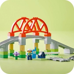 A LEGO DUPLO Vasúti híd és sínek készlet kiegészítést nyújt az interaktív vasúti szettekhez. Ez a kreatív játék lehetővé teszi egy felnyitható híd hozzáadását és a pálya meghosszabbítását nyolc egyenes sínnel, amelyek bármely LEGO DUPLO vasúti szettel összekapcsolhatók. A kétéves kortól ajánlott gyerekek mozdonyvezetőt játszhatnak, ami támogatja a kéz–szem koordináció fejlesztését.