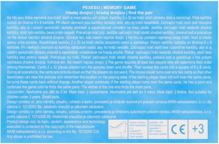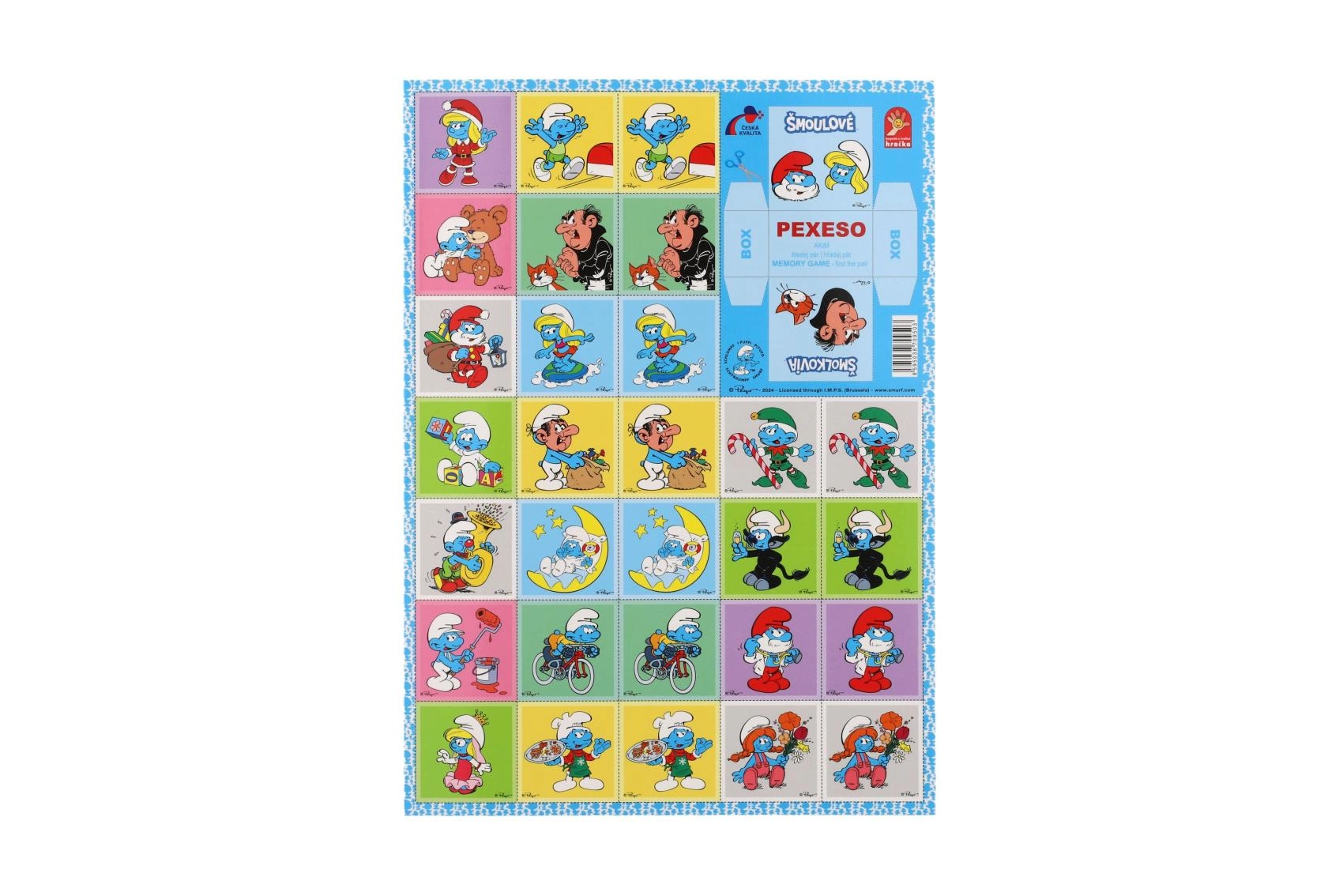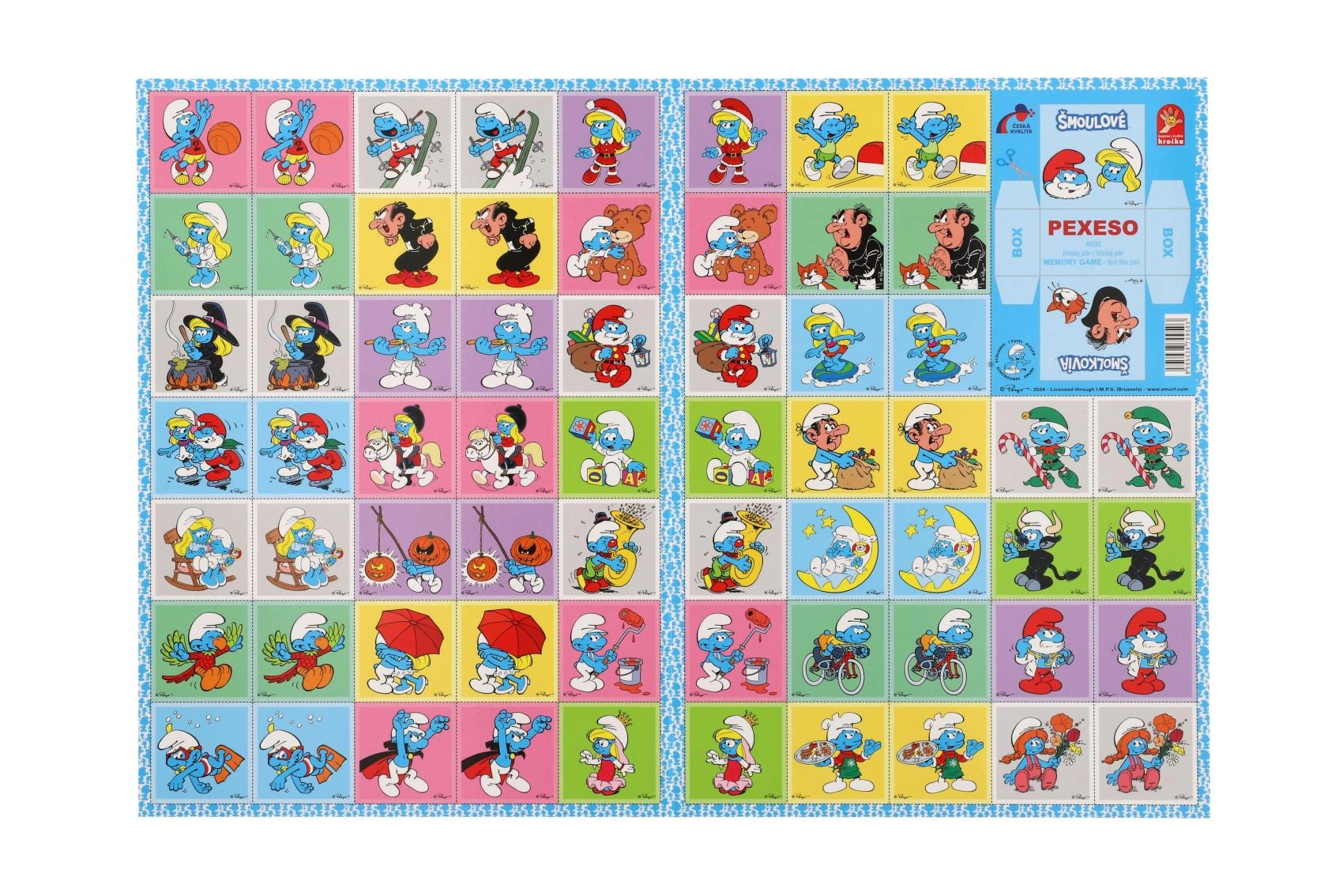 A Hupikék törpikék pexeso a közkedvelt memóriajátékot hozza el a kék hősök motívumaival. A minőségi, erős karton és a fényes, vízlepergető felület jól bírja a gyakori használatot, még gyerekkezekben is. A 4 × 4 cm-es kártyaméret kényelmes a kezeléshez és az áttekinthető kirakáshoz.
