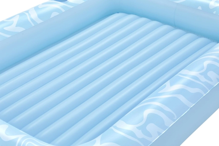 A masszív I-beam szerkezetet 3 különálló légkamra egészíti ki, ami jobb stabilitást és nyugodtabb pihenést biztosít a víz felszínén. A matrac könnyen felfújható, leereszthető és hordozható, a csomagban pedig öntapadó javítófoltot is talál kisebb sérülések gyors javításához.