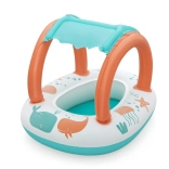 Könnyű és kényelmes csónak a legkisebbeknek, amely a vidám tengeri grafikát UV-védelemmel ellátott praktikus napellenzővel ötvözi. A levehető napellenző tépőzárral rögzíthető, így könnyen az időjáráshoz és napsütéshez igazítható. A zárt ülőrészen található lábnyílásoknak köszönhetően a gyerekek stabilan és biztonságosan lubickolhatnak.