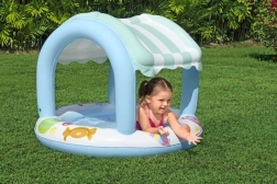 A felfújható tető árnyékot és UV-védelmet biztosít a gyerekeknek, így biztonságosabb a szabadtéri játék.