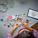 Fedezd fel a kreatív styling világát a játékos LEGO Friends fodrászszalon és kiegészítőbolt készlettel. A 7 éves kortól ajánlott gyerekek élvezhetik a szerepjátékot 3 minibaba, egy kétszintes épület és rengeteg hajkiegészítő segítségével. Fent szalon styling székekkel, hajszárítókkal, kefékkel és parókákkal, lent pedig kis üzlet forgatható vitrinnel, parókákkal és kiegészítőkkel várja őket. Nem hiányzik a fotófülke sem, hogy NOVA és ALIYA emlékbe hazavihessen egy fotócsíkot, valamint egy görkorcsolyarámpa sisakkal a biztonságos guruláshoz.