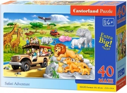 Fedezd fel az állatok világát a CASTORLAND Kaland a szafarin padlópuzzle-lel. A 40 erős MAXI darabnak köszönhetően az összeállítás áttekinthető és szórakoztató a fiatalabb gyerekek számára is. Összerakva egy gyönyörű, szafari állatokat ábrázoló kép jön létre, amely kiállítható, vagy újra és újra kirakható.