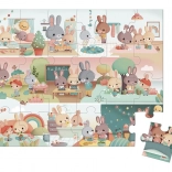 A JANOD kirakó az eredeti bőröndben szórakoztató utazást kínál a „Az én napom” témán keresztül. A kedves nyuszik hétköznapi tevékenységeket mutatnak be, így a kirakás nemcsak szórakoztató, hanem tanulságos is. A praktikus fogantyúnak köszönhetően a bőrönd könnyen hordozható – utazáshoz, nyaraláshoz és látogatásokhoz ideális.