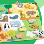 Fedezze fel a fa betét varázsát az állatokkal, amely nemcsak fejleszti gyermekét, de órákig tartó szórakozást is nyújt. Ez a színes kirakós támogatja a kéz-szem koordinációt és a logikai gondolkodást. Az egyes darabok különböző körvonalakat tartalmaznak, amelyek megkönnyítik a helyes összerakást.