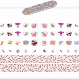 - Készlet tartalma: 30 körömmatrica, 10 kisebb matrica, 1 kivágásra kész minta csík, 1 körömreszelő.