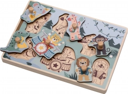 A játék tartós fából készült, kényelmes fogású a kis kezek számára, és hosszú időre lefoglal. Ideális első fa hangos kirakó a készségek és az önbizalom fejlesztéséhez az önálló játék során.