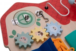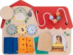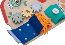 Nyitható ablakok, zárak, cipzárak és fűzők játékos formában fejlesztik a finommotorikát és az ujjak ügyességét.