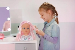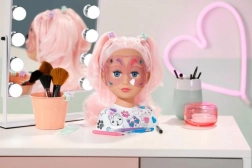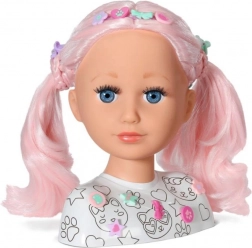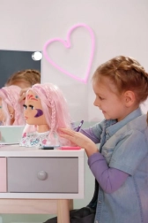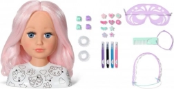 Ez a kreatív fésülhető fej ideális kis stylistoknak és sminkmestereknek. A kiváló minőségű nylonból készült hosszú, rózsaszín haj jól tartja a formáját, és tökéletes fésüléshez, copfokhoz és fonáshoz. A mellékelt filcek és sablon segítségével könnyedén készíthető egyedi smink és vidám arcdekor.