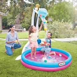 Hozza haza az aquapark hangulatát! A Little Tikes vízi játszózóna kettős vízesést, felfújható medencét, interaktív víz- és labdaszállítót, valamint akár 25 műanyag labdát kínál a végtelen szórakozáshoz. Csak csatlakoztassa a kerti tömlőt, és indulhat a fröcskölős móka – vagy játsszanak bent víz nélkül.