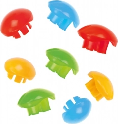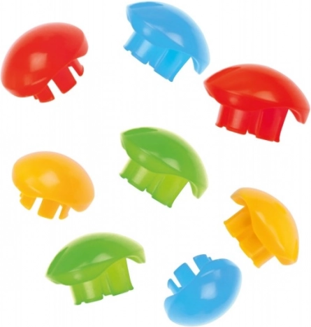 A sima, masszív elemek 3,2 cm átmérővel könnyen megfoghatók, és biztonságosan illeszthetők a lyukakba – ideálisak első mozaikokhoz.