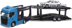 A 1:43 méretarányú, BBURAGO márkájú stílusos autószállító a részletgazdag SCANIA 770S fülkét ötvözi a többszintes pótkocsival és az ikonikus LAMBORGHINI URUS rakománnyal. Fém kivitel, precíz részletek és működő kerekek biztosítják a nagyszerű játékélményt és a látványos megjelenítést bármely gyűjteményben.