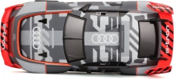 A sportos fényezés, a nagy szárny és az aerodinamikus vonalak hűen idézik az AUDI S1 e-tron quattro versenyautót.