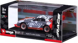 Ez a valósághű Audi S1 e-tron quattro versenyautó-modell 1:43 méretarányban a fém karosszériát finoman kidolgozott részletekkel ötvözi, mint például az aerodinamikai elemek, a markáns hátsó spoiler és az autentikus versenydekorok. Minőségi kivitele miatt gyűjtőknek és fiatal autórajongóknak egyaránt ideális.