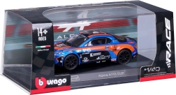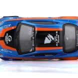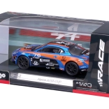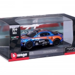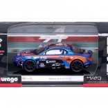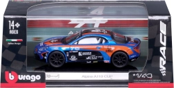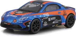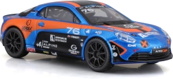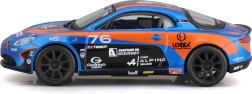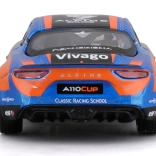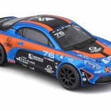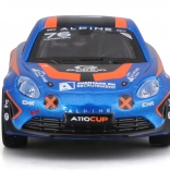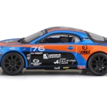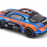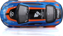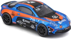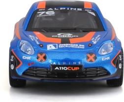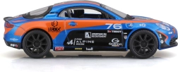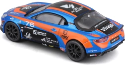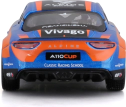 Részletgazdag Alpine A110 Cup versenyautó-modell az ikonikus kék–narancs versenyliveryvel, valósághű arányokkal, tiszta szponzornyomatokkal és szabadon forgó kerekekkel a sima gurulásért. Sötétített ablakok, formázott fényszórók és aerodinamikus sziluett emelik ki az eredeti sportos karakterét.